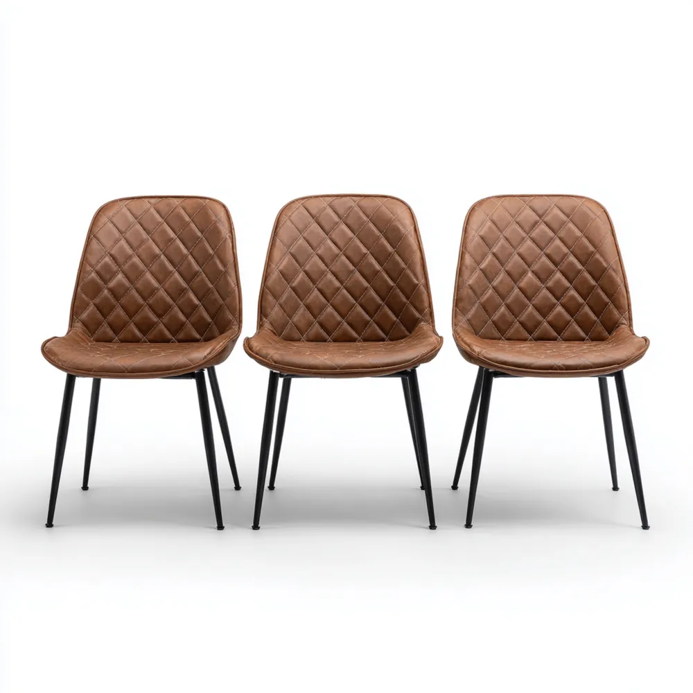 Set di 3 Sedie da Pranzo 45x55x85 cm in Ecopelle Marrone con Gambe in Metallo Nero - Design Moderno