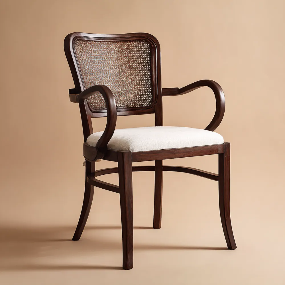 Introduzione al ProdottoQuesta sedia da pranzo è una combinazione elegante di legno massello e rattan, progettata per adattarsi a qualsiasi sala da pranzo con un tocco classico.