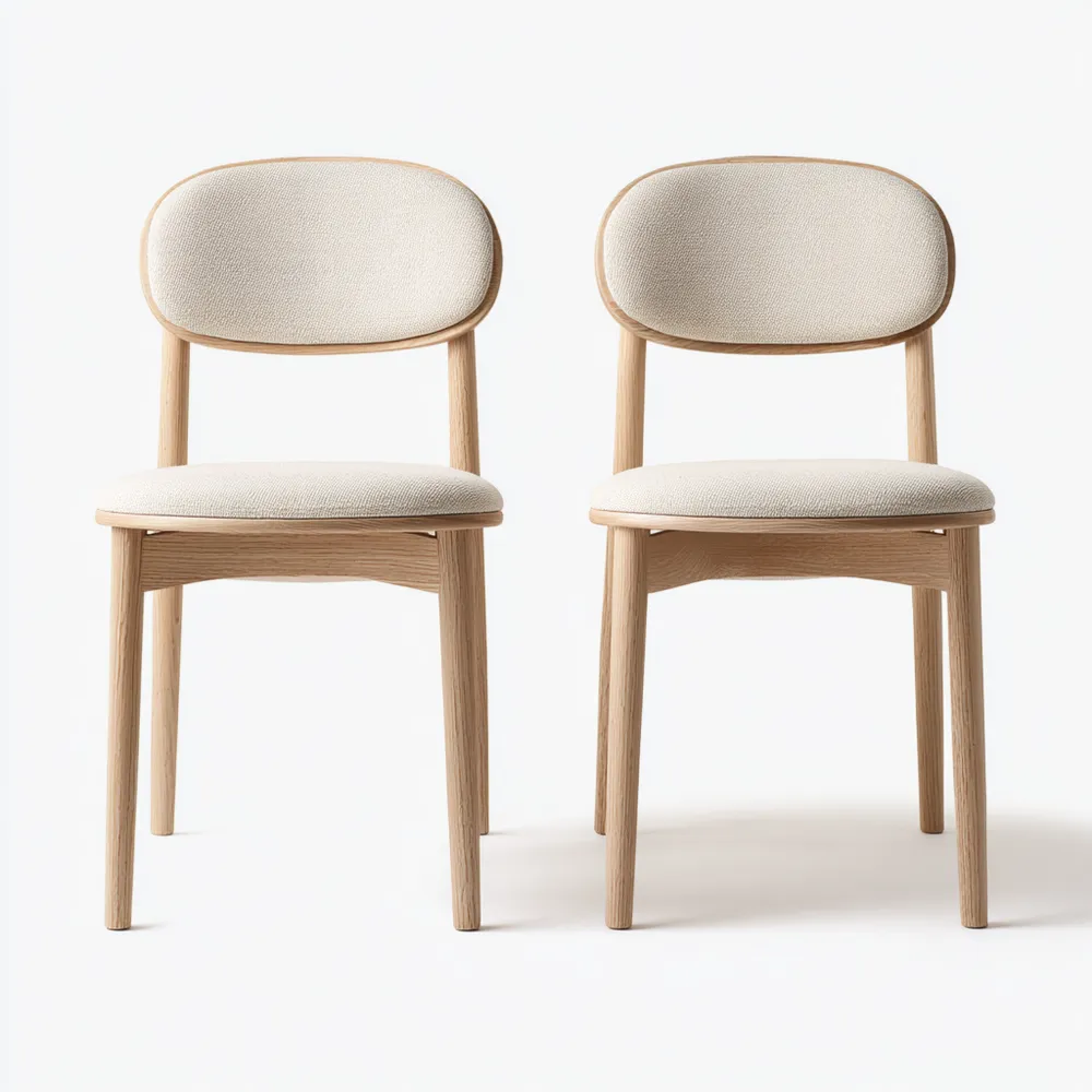 Introduzione al prodottoQueste sedie da pranzo moderne combinano comfort ed estetica con una struttura in legno naturale e sedili in tessuto morbido.