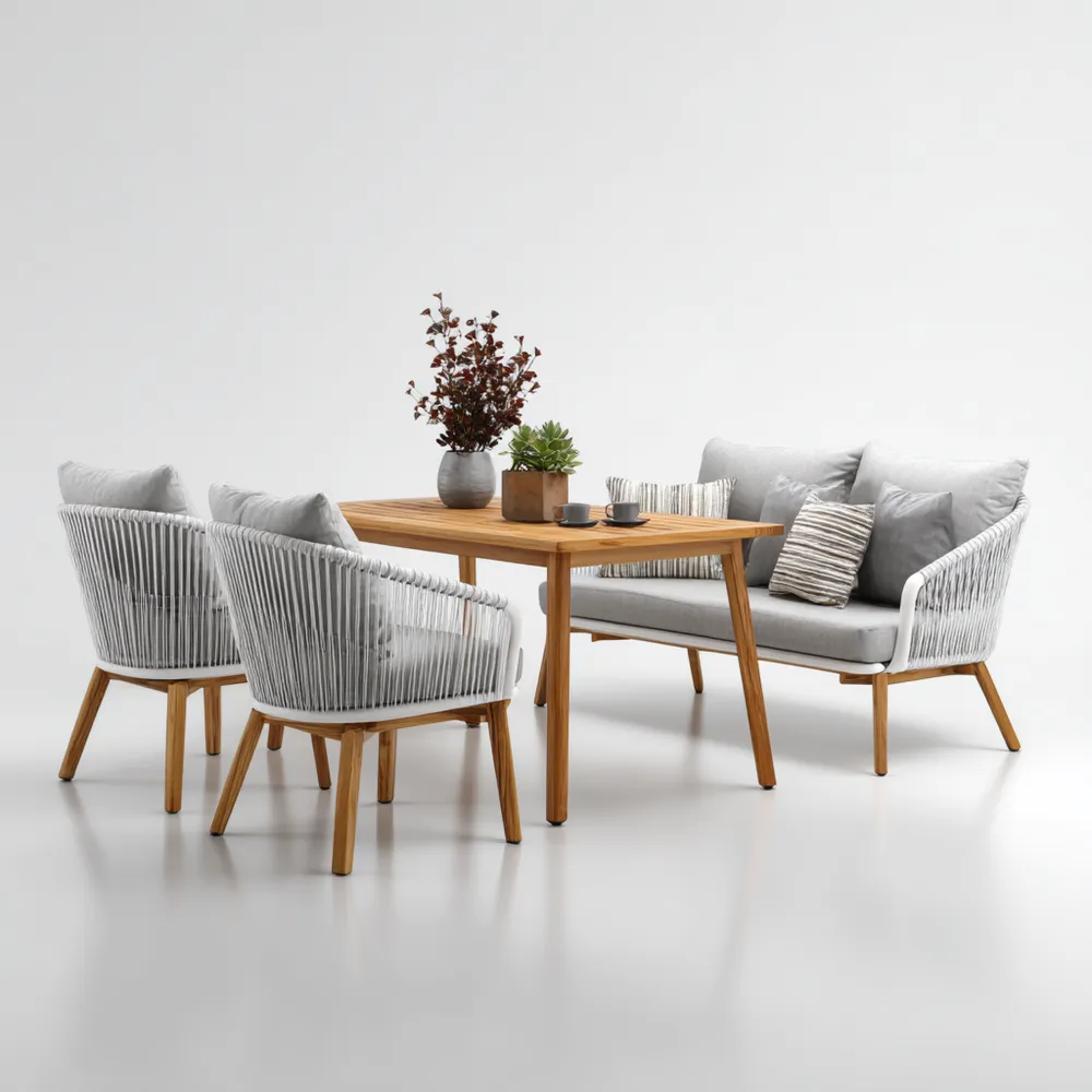 Funzionalità PrincipaliProgettato per garantire comfort e stile, il set è perfetto per rilassarsi all'aperto. La corda intrecciata aggiunge un tocco moderno e sofisticato.