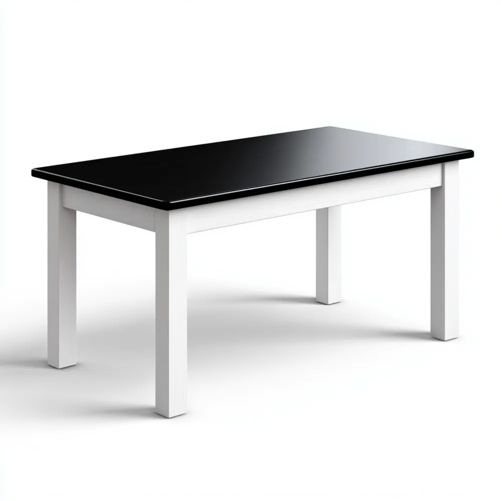 Materiale e artigianatoRealizzato in legno resistente con un piano nero e gambe bianche, questo tavolo offre una struttura solida e un'estetica sofisticata.