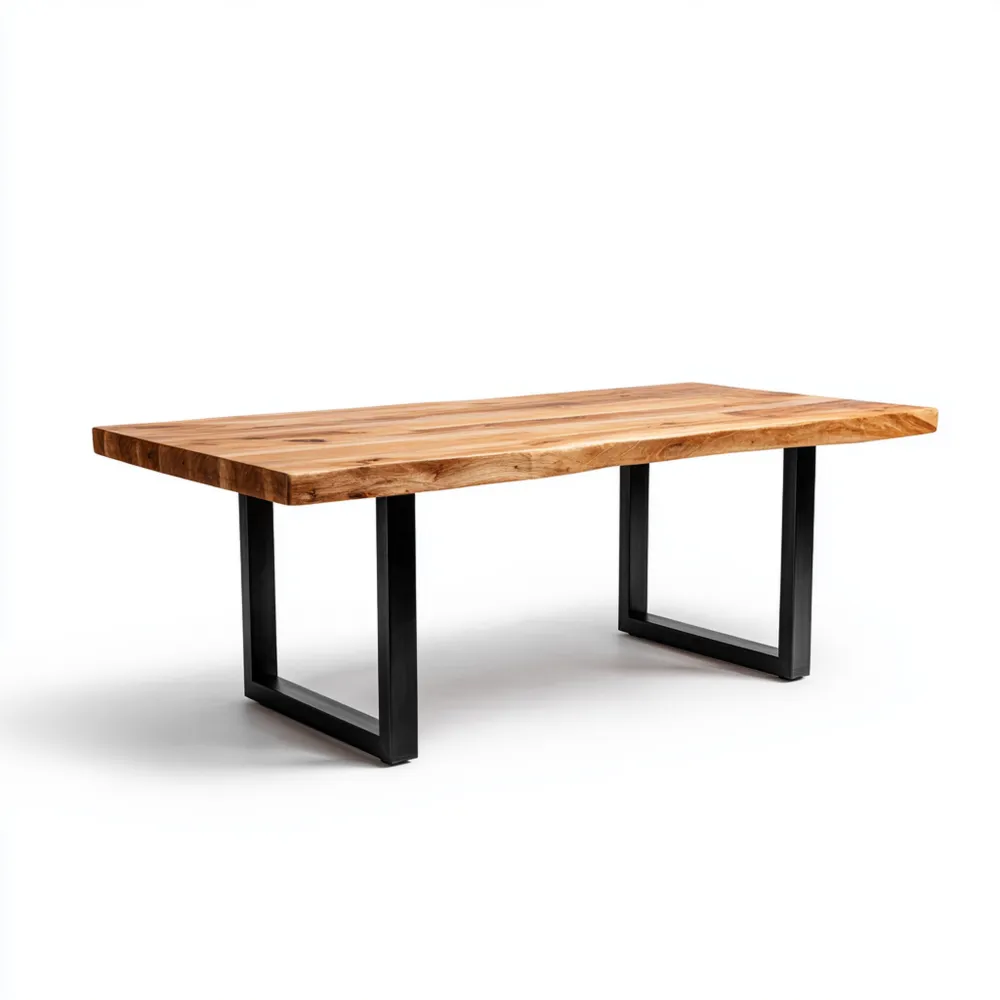 Questo tavolo da pranzo combina l'eleganza del legno massello di acacia con lo stile minimalista del design industriale. Ideale per chi cerca un tocco rustico e moderno nel proprio spazio abitativo.