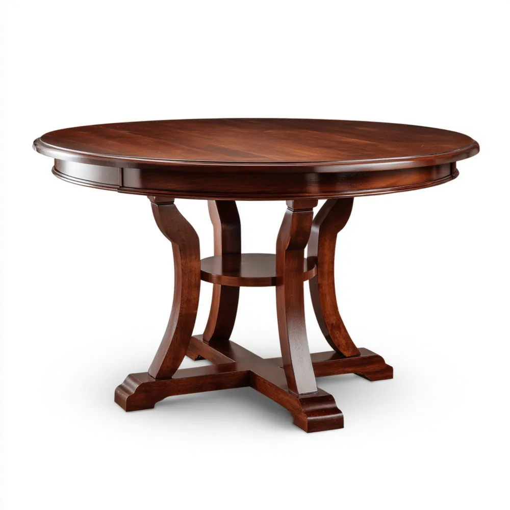 Introduzione al prodottoElegante tavolo da pranzo rotondo realizzato in legno massello, ideale per chi cerca un tocco classico e senza tempo nella sala da pranzo.