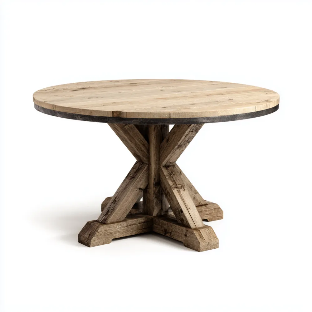 Introduzione del prodottoUn magnifico tavolo da pranzo rotondo realizzato in legno massello, perfetto per aggiungere un tocco rustico e accogliente alla tua sala da pranzo.